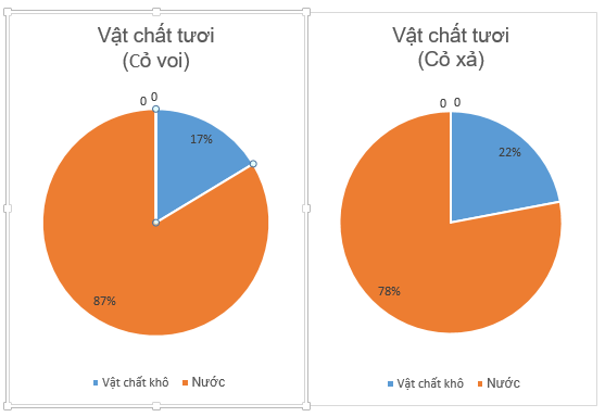 - Năng suất vật chất khô (tấn/ha) = sinh khối tươi (tấn/ha) x hàm lượng vật chất khô (%)