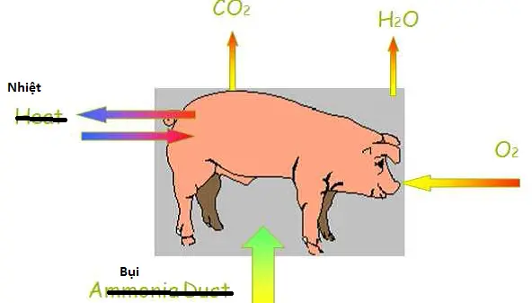 Tất cả các động vật sống đều có một quá trình trao đổi chất liên tục, quá trình kết hợp và phân hủy thức ăn và khí oxy hít vào và sản xuất các chất phế thải như nhiệt, CO2, nước, ... Heo luôn luôn cần ở trong vùng thoải mái của nhiệt độ, chỉ như vậy sau đó người chăn nuôi mới có thể mong đợi kết quả tốt nhất về kỹ thuật và kinh tế.
