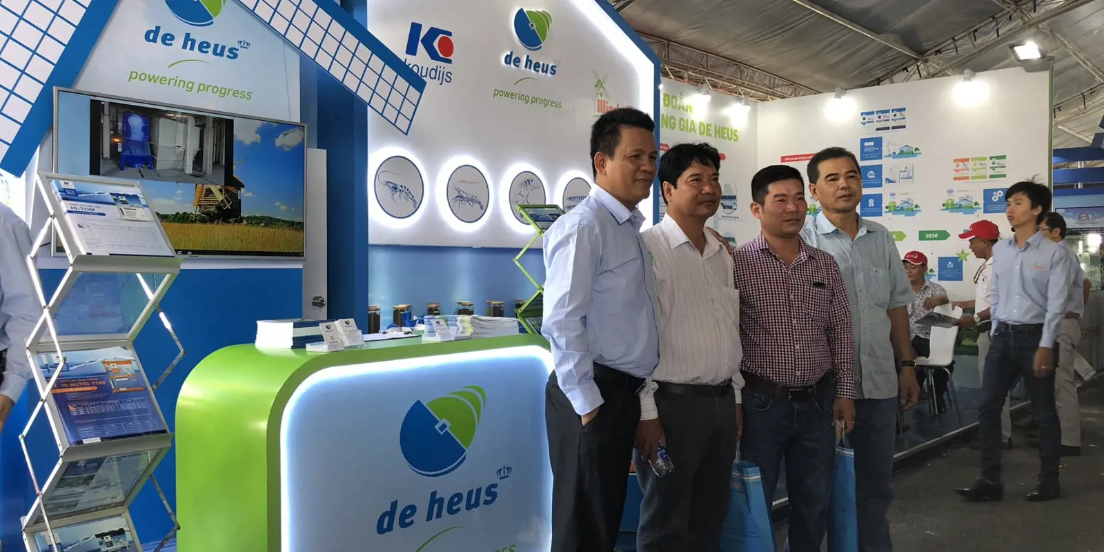 De Heus góp mặt lần này tại VietShrimp 2018 tại gian hàng 22-23-24 nhằm giới thiệu đến quý khách hàng, quý đại lý, quý đối tác những sản phẩm thức ăn tôm chất lượng cao được sản xuất trên dây chuyền sản xuất hiện đại của công ty, với mong muốn đến gần hơn với người nuôi tôm tại Bạc Liêu nói riêng và trong khu vực ĐBSCL nói chung. Đến với gian hàng của De Heus, người nông dân có cơ hội gặp gỡ các chuyên gia, tiếp cận với những phương pháp nuôi trồng bền vững, tiên tiến bằng thức ăn De Heus cũng như cùng tham gia các trò chơi đố vui trúng thưởng những món quà lưu niệm. Ngoài ra, gian hàng De Heus cũng vinh dự đón tiếp Thứ trưởng Bộ NN – PTNT Vũ Văn Tám và TS Trần Đình Luân - Phó Tổng cục trưởng Tổng cục Thủy sản ghé thăm.