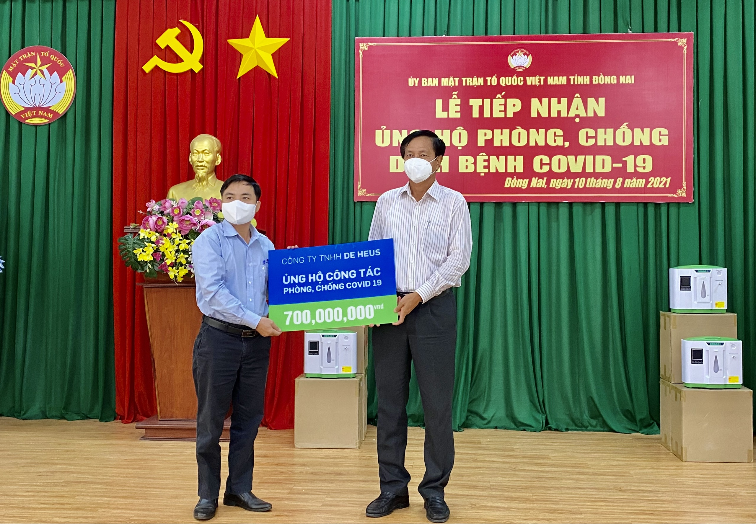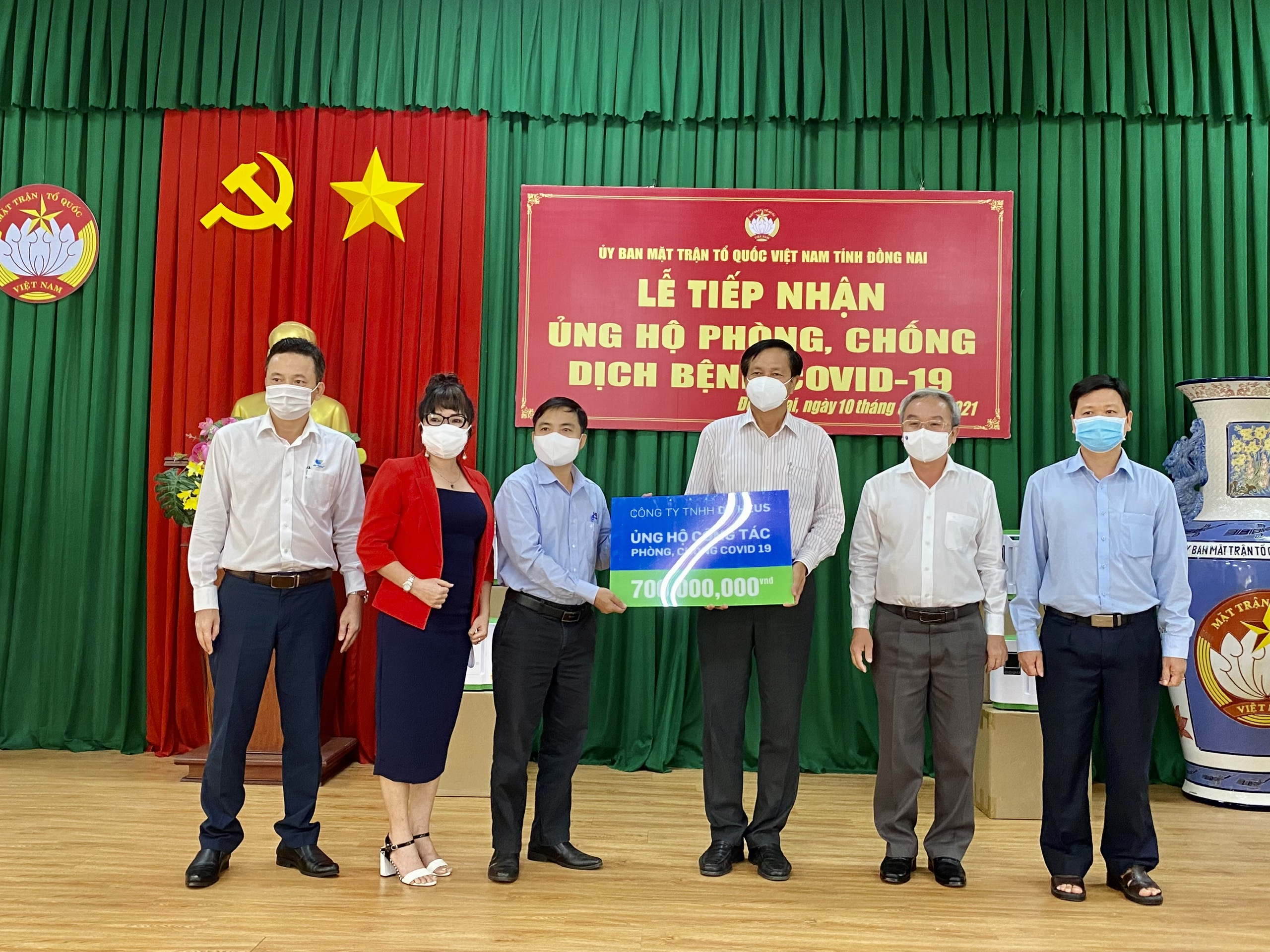 - Đồng Nai: ủng hộ 5 máy monitor giúp theo dõi tình trạng sức khỏe bệnh nhân tại các cơ sở y tế tiếp nhận điều trị bệnh nhân nhiễm Covid-19, đồng thời ủng hộ thêm một phần kinh phí cho Ủy ban Mặt trận Tổ quốc Việt Nam, tỉnh Đồng Nai.
