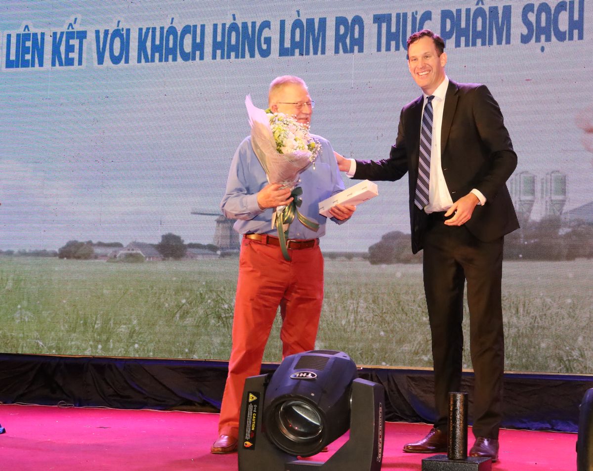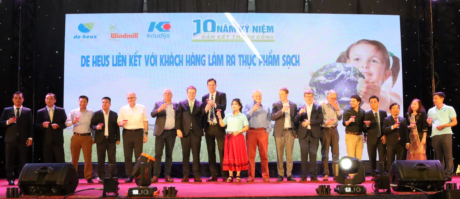 Cũng tại Hội nghị, ông Gabor Fluit - Tổng Giám Đốc De Heus khu vực Châu Á đã thay mặt Ban giám đốc và tập thể nhân viên của tập đoàn De Heus gởi lời biết ơn sâu sắc nhất đến ông Gareth, khách hàng đã đồng hành với De Heus trong những năm vừa qua. Đồng thời, sẽ tiếp tục gắn kết, vững mạnh tiến lên phía trước cho những năm sau nữa. Cùng với đó, ông Gabor Fluit giới thiệu một thành viên ban giám đốc mới ông Johan Van den Ban – Tổng Giám Đốc De Heus Hà Lan tại Myanmar sẽ nắm giử vị trí Tổng Giám Đốc De Heus Hà Lan tại Việt Nam và Cambodia. Bên cạnh đó, ông Gabor đã báo cáo tổng quát về 10 năm hoạt động của De Heus tại Việt Nam. Khởi đầu từ năm 2009 với sản lượng 42.000 tấn/năm, đến năm 2019, có sản lượng vượt mức 1.300.000 tấn/năm, qua 10 năm sản lượng tăng trưởng 3.095%, bình quân một năm tăng trưởng 310%. Đặc biệt, năm nay tình trạng dịch bệnh dịch tả heo heo Châu Phi bùng mổ khắp cả nước, giảm hơn 30% tổng đàn heo, gây thiệt hại lớn cho ngành chăn nuôi heo nhưng De Heus vẫn đảm bảo kế hoạch tăng trưởng 110% só với năm 2018. Để đạt được con số tăng trưởng ấn tượng đó chính là nhờ vào sự tin dùng sản phẩm De Heus của quý đại lý, quý trang trại trong hơn 10 năm qua. Mặt khác, với phương châm sản xuất kinh doanh “De Heus liên kết với người chăn nuôi làm ra thực phẩm sạch”. Do vậy, De Heus luôn sát cánh cùng người chăn nuôi trong những lúc khó khăn cũng như lúc thuận lợi…