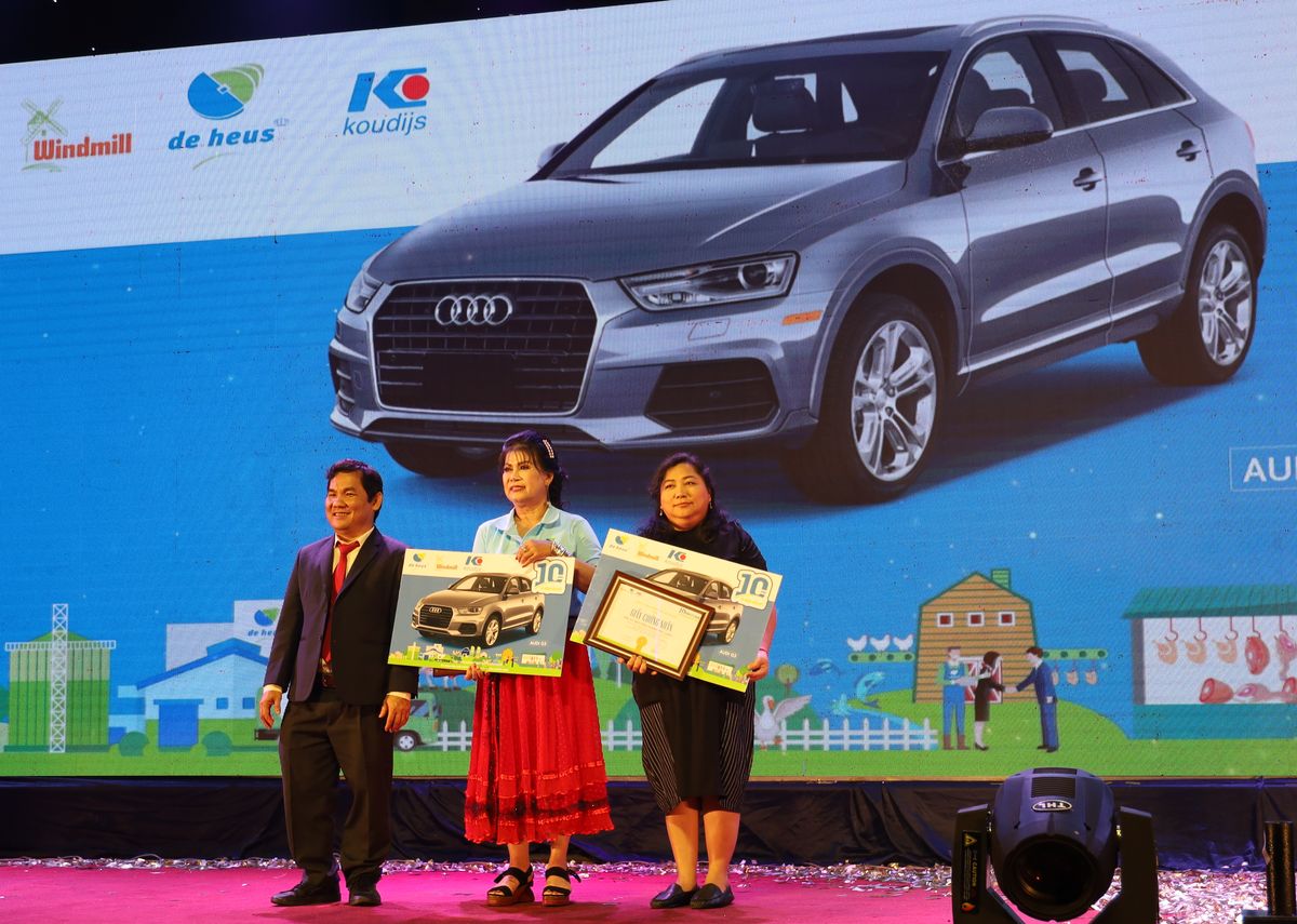 Chia sẻ về điều này, chị Lê thị Thạnh – chủ đại lý Hạnh Phước cho biết, với sản lượng bán hàng mỗi tháng từ 1.200 tấn đến 1.500 tấn/tháng, chị Thạnh vừa nhận giải thưởng xe ô tô Audi Q3; giải thưởng mà chị nhận được chỉ là một phần nhỏ trong tất cả những gì mà De Heus đã mang lại cho đại lý Hạnh Phước. Cái mà chị cảm kích nhất chính là lúc khó khăn, lúc giá heo xuống quá thấp, lúc dịch bệnh dịch tả heo Châu Phi xảy ra trên diện rộng cả nước, xóa sổ các trang trại chăn nuôi heo nhỏ lẽ là khách hàng mua trực tiếp của đại lý. Trong tình cảnh khó khăn đó, ông Thạch Văn Chán – giám đốc kinh doanh khu vực Miền Tây đã định hướng lại, xoay chuyển hướng kinh doanh sang con vật khác, như Vịt, Gà, Dê, … nên đại lý Hạnh Phước vẫn đảm bảo được sản lượng đã cam kết với công ty. Songsong đó, ông Gabor Fluit luôn sát cánh cùng đại lý, chia sẽ những khó khăn, tìm giải pháp kinh doanh mới cho đại lý. Từ đó, chị có được niềm tin.