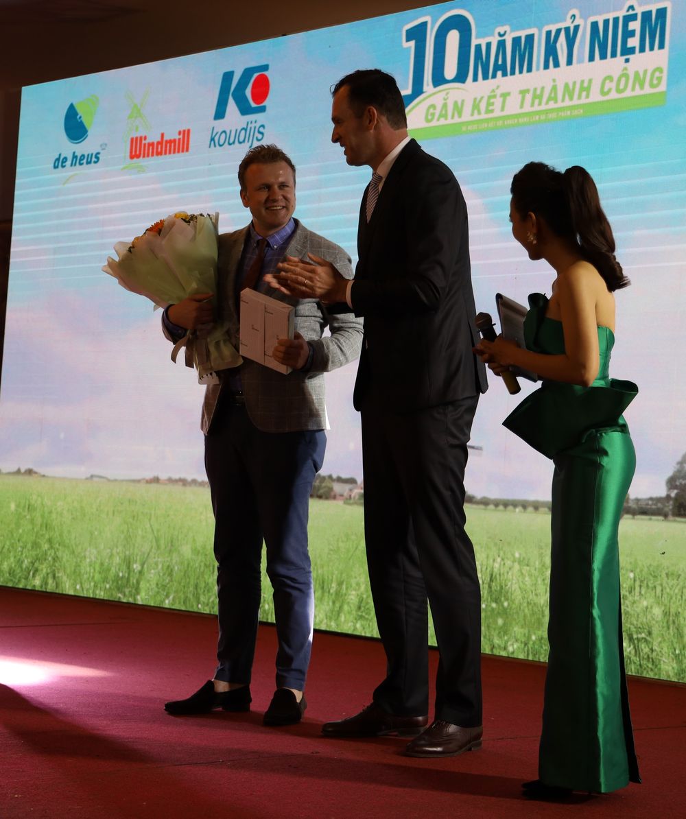 Tại Hội nghị, để vinh danh sự gắn kết 10 năm giữa De Heus và khách hàng trong khu vực Miền Đông Nam Bộ. Trong đó, có nhiều giải thưởng có giá trị cao như: xe hơi Audi Q7 2.0L 8AT, Lexus RC 200t 2.0L 8AT, Mercedes Bens CLA 45AMG, BMW X3, Drive 20i 2.0L 8AT, Toyota Fortuner V 4x4, Camry E 2.0L và nhiều loại xe ô tô, xe mô tô khác.