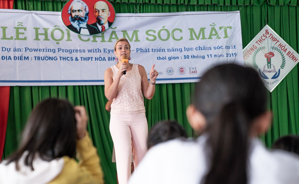 Tương tự, bà Rolinda De Heus chia sẻ: “Các em học sinh là tương lai của đất nước. Tôi rất vui khi có thể làm được gì đó cho các em.” Cùng với đó, bà Rolinda De Heus gởi lời cám ơn đến nhà trường, các y, bác sĩ, các tình nguyện viên của tập đoàn De Heus đã tham gia lễ hội. Bà Rolinda luôn tin rằng; “Việc trao đi niềm vui cũng là nhận lại hạnh phúc”. Bà Rolinda thực sự cảm kích khi cảm nhận được mọi người đang hạnh phúc khi tham gia Lễ hội chăm sóc mắt.