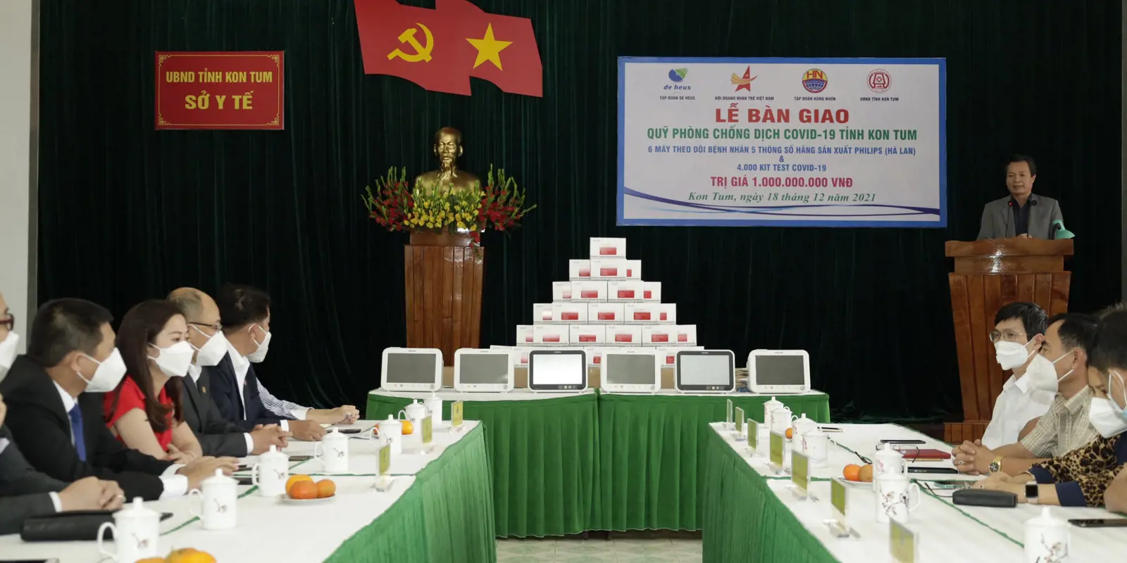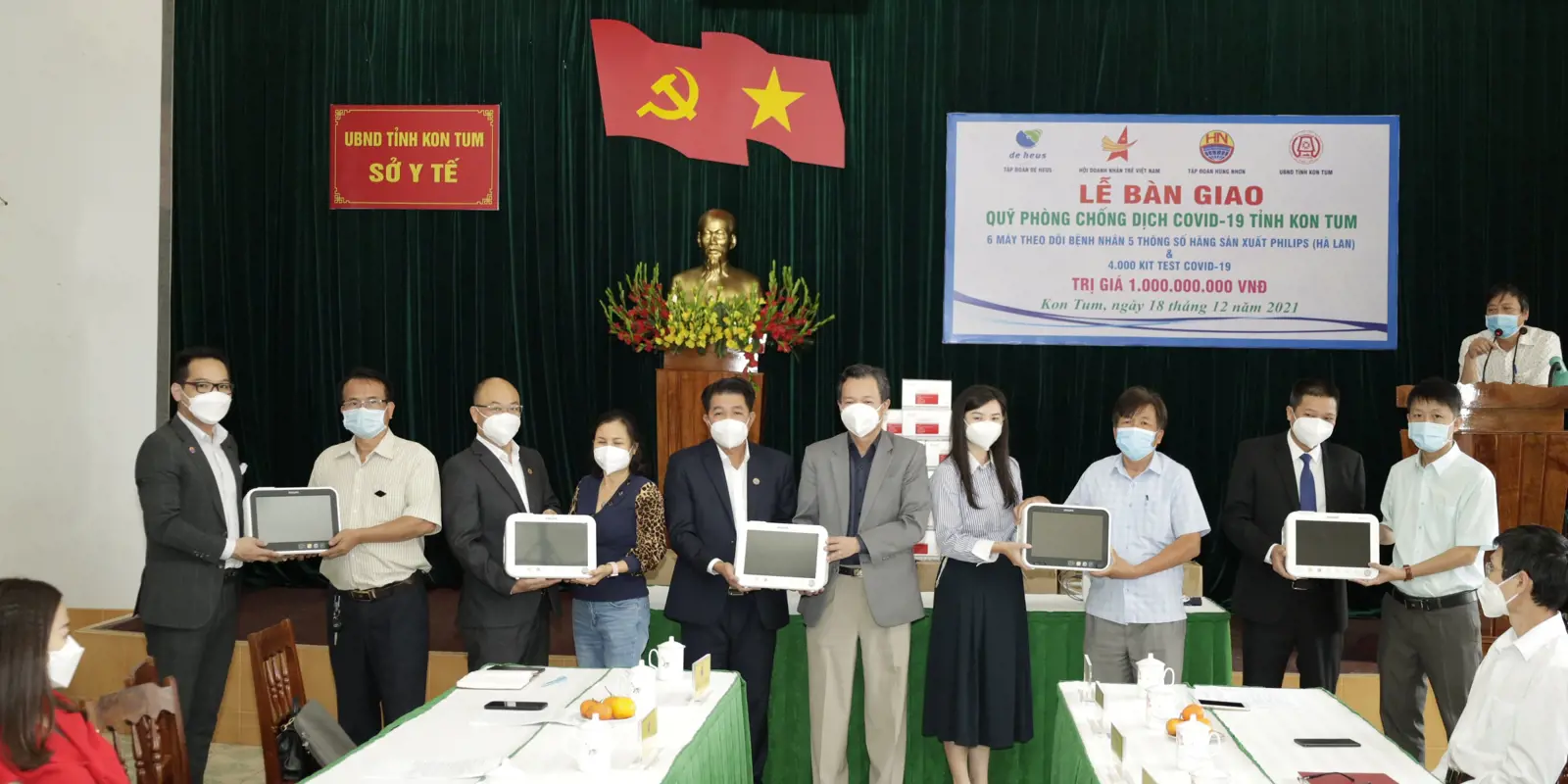 Sáng ngày 18-12-2021, tại Sở Y Tế tỉnh Kon Tum, số 808 Phan Đình Phùng, TP Kon Tum, đã diễn ra Lễ bàn giao trang thiết bị y tế phòng chống dịch COVID-19 của Tập đoàn De Heus và Tập đoàn Hùng Nhơn tặng tỉnh Kon Tum
